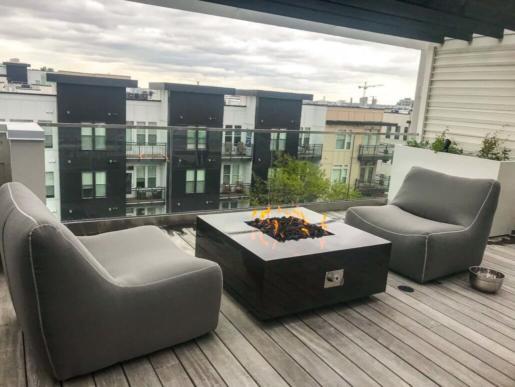 Our team of experts works with you to design a custom fire pit or fireplace aligning your needs and wants. We assess your rooftop deck or patio, consider all existing structural factors, and create a design with intentionality and aesthetic top of mind. We finalize plans after you’re completely satisfied. See our two locally made fire pits here.